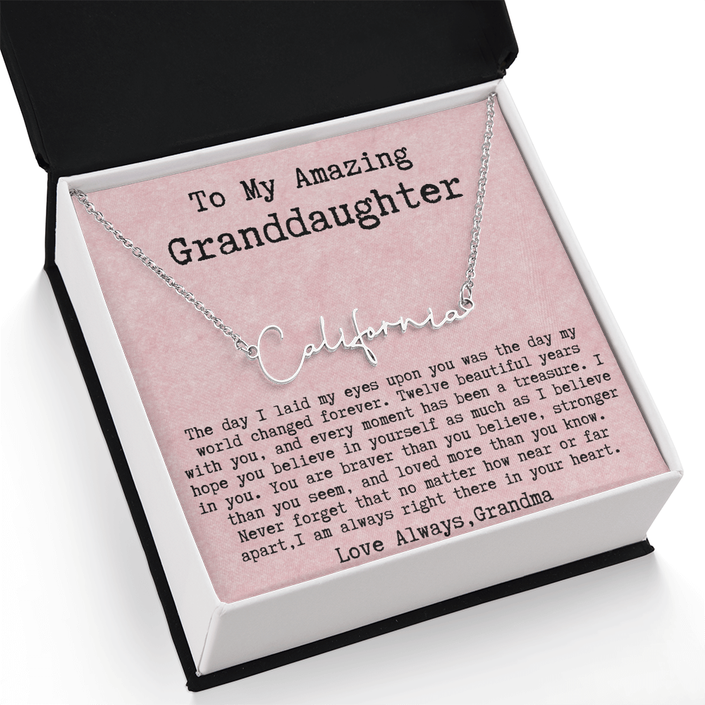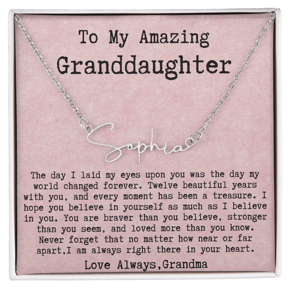 Personalized 12th Birthday Gift from Grandma to Granddaughter - Signature Style Name Necklace