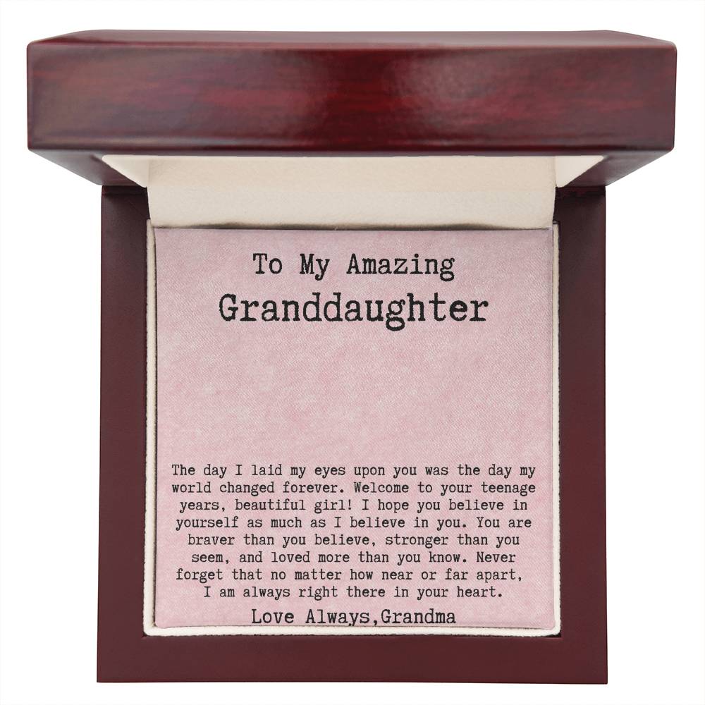 Show your granddaughter just how much she means to you with this Personalized Signature Style Name Necklace. Thoughtfully customized with her name in the USA, this heartfelt gift celebrates the unbreakable bond you share. A beautiful keepsake she’ll treasure forever, this custom piece is the perfect way to show your love. Every necklace is carefully crafted with attention to detail, then shipped directly to your door. Quality you can trust, delivered with care.