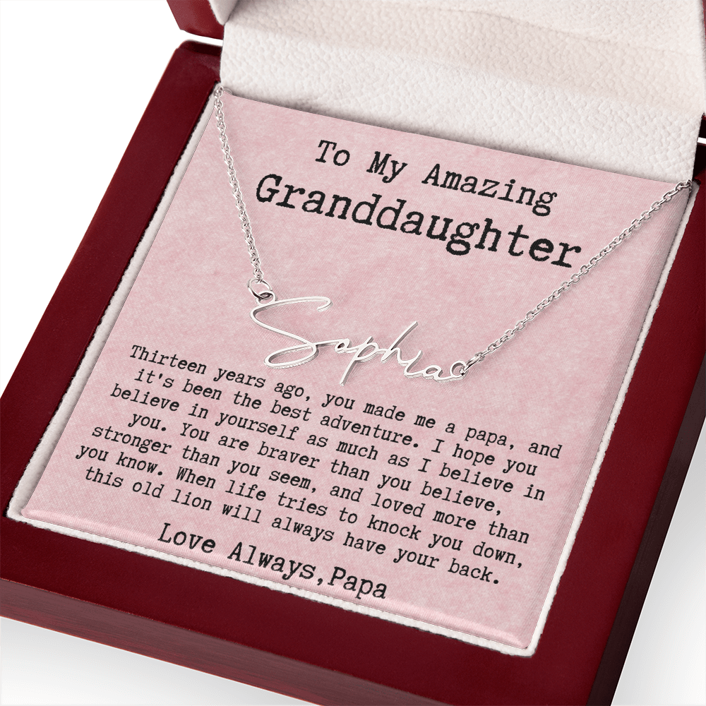 Personalized 13th Birthday Gift for Granddaughter from Papa - Signature Style Name Necklace