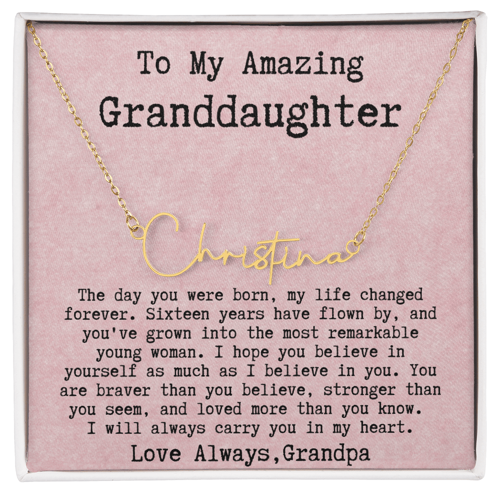 Personalized 16th Birthday Gift for Granddaughter from Grandpa - Signature Style Name Necklace