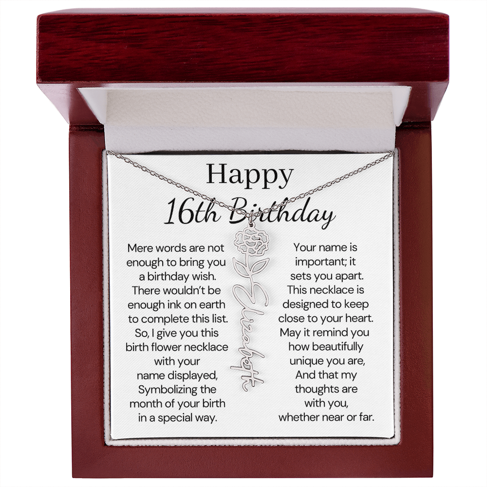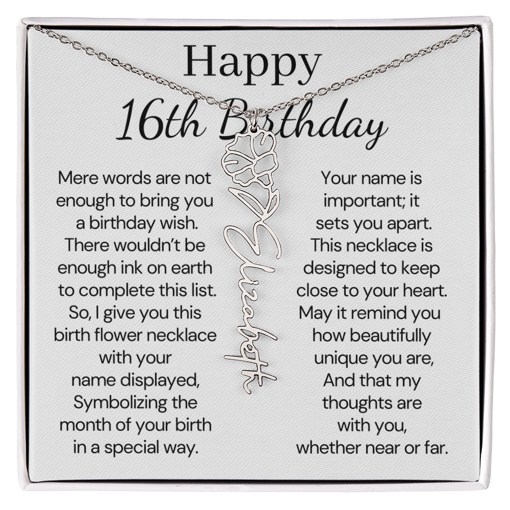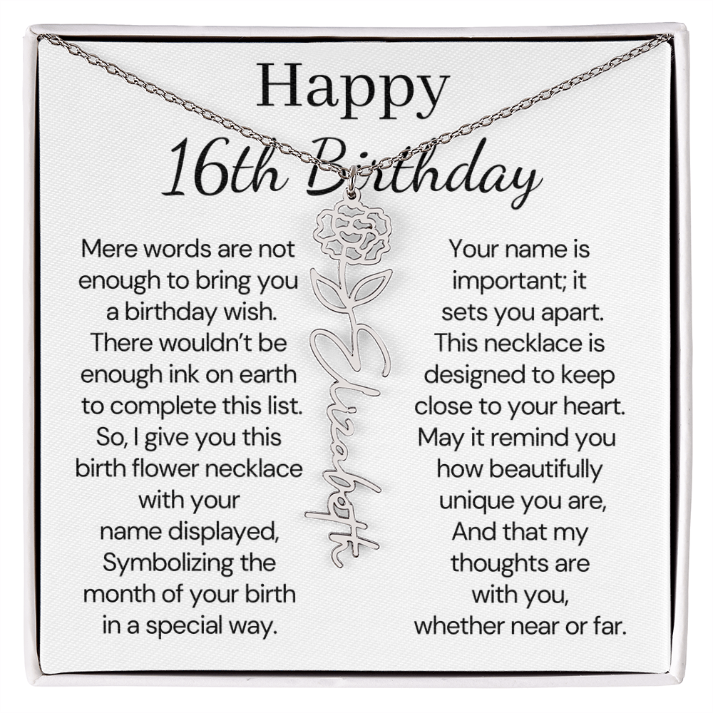 Personalized 16th Birthday Gift for Her – Customized Birth Flower Name Necklace – Jewelry Gift for Granddaughter, Daughter, or Niece