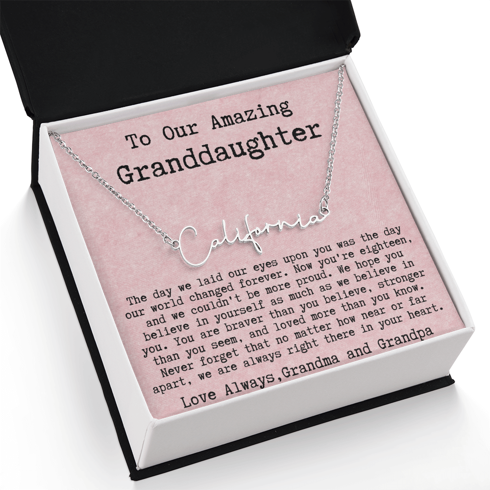 Personalized 18th Birthday Gift for Granddaughter from Grandma and Grandpa - Signature Style Name Necklace