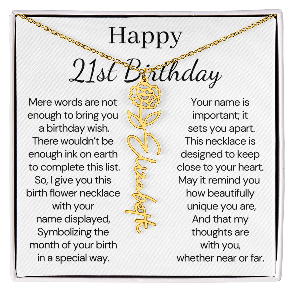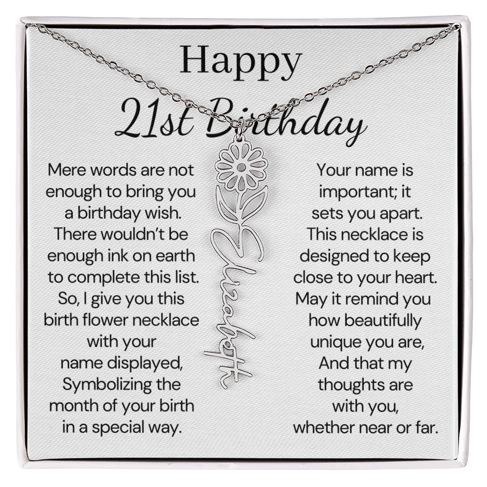 Personalized 21st Birthday Gift for Her – Customized Birth Flower Name Necklace – 21st Birthday Jewelry Gift for Granddaughter, Daughter, or Niece