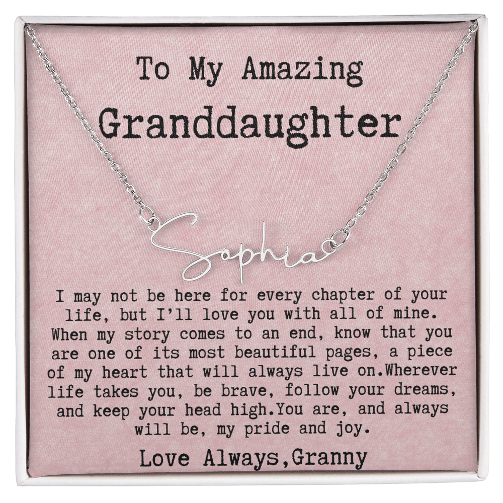 Personalized Birthday Gift for Granddaughter – Custom Signature Style Name Necklace – Unique Name Plate Necklace from Granny